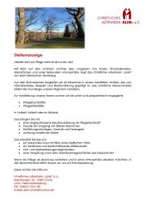 Stellenausschreibung – Christliches Altenheim „Elim“ e. V.